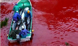 Japó caçarà i donarà mort aquest any a 20.000 cetacis. Aquests pescadors asiàtics persegueixen als grups de dofins a mar obert mentre colpegen pals de metall sota l’aigua per confondre el seu sistema de sonar. Els animals ja esgotats són conduïts a una cala envoltada amb grans xarxes per evitar que s’escapin i així matar-los al dia següent amb ganivets i llances.