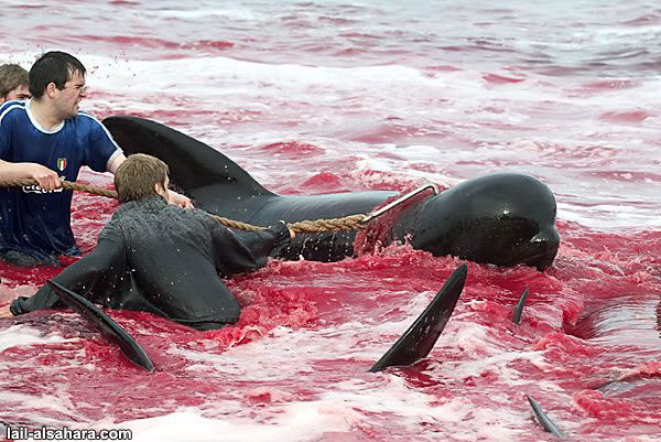 Cada any a Dinamarca a les illes Fèroe, es porta a terme una massacre contra els dofins calderon espècie que mesura de 6 a 7 metres i que pot arribar a pesar les 4 tones i resideixen a l’estret de gibaltrar, no els incomoden les persones i s’acosten a ells carregats de sensibilitat i curiositat.